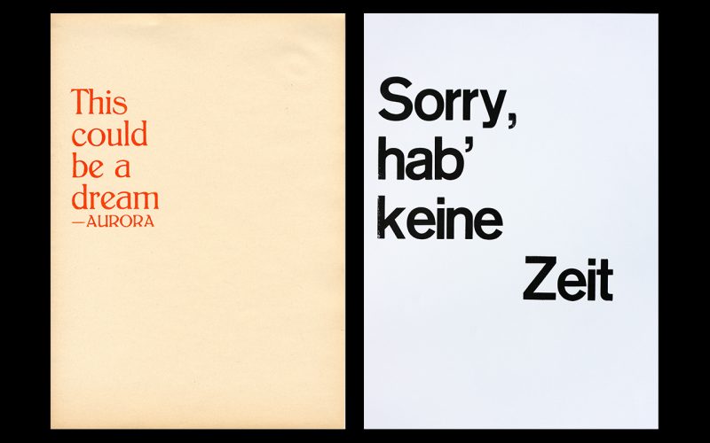Die Basics-21 beschäftigen sich im Wintersemester unter der Leitung von Roman Wilhelm mit den Grundlagen der Schriftgestaltung. Mittels Tusche und Federn entwickeln die Studierenden erste eigene Schriftbilder – mit und ohne Serifen. Es folgt eine praktische Einführung in den Bleisatz, wobei die Studierenden individuelle Drucke anfertigen. Schließlich werden selbstgewählte Zitate digital umgesetzt; Ziel ist dabei einfache, klare sowie freie typografische Lösungen zu erarbeiten.